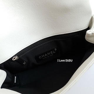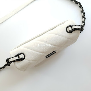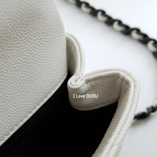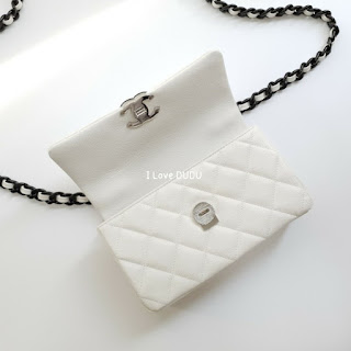 전체적으로 샤넬의 신작 스몰 플랩 백 화이트는 화이트와 블랙의 대비를 강조하는 디자인으로 내부 안감도 블랙으로 깔끔합니다.
