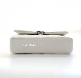 곡선으로 우아하게 떨어지는 플랩 라인과 완벽한 다이아몬드 퀄팅의 정면 모습.