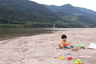 섬진강이 흐르는 강기슭이 모래사장으로 되어 있습니다제가 방문했을 때는 하동 지역에 홍수가 나서 그런지, 아니면 원래 그런지 물이 더러운 편이었는데 그래도 백사장에 앉아 흐르는 강을 바라보며 피크닉하기에 좋은 곳이었습니다.저는 태풍이 올라오는 시점이라 하늘이 흐리고 비가 뚝뚝 떨어져서 아쉬웠지만 비가 그친 잠시 아이들과 모래놀이를 하면서 지냈습니다.평사리공원은 해질녘에 가면 산 너머로 지는 해를 볼 수 있어서 더 예쁜 것 같습니다.
