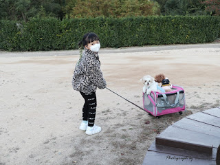 아무래도 아이가 집에 있던 거니까 강아지 2마리에 아이까지 데리고 나가서 산책하기란 정말 힘들어요___